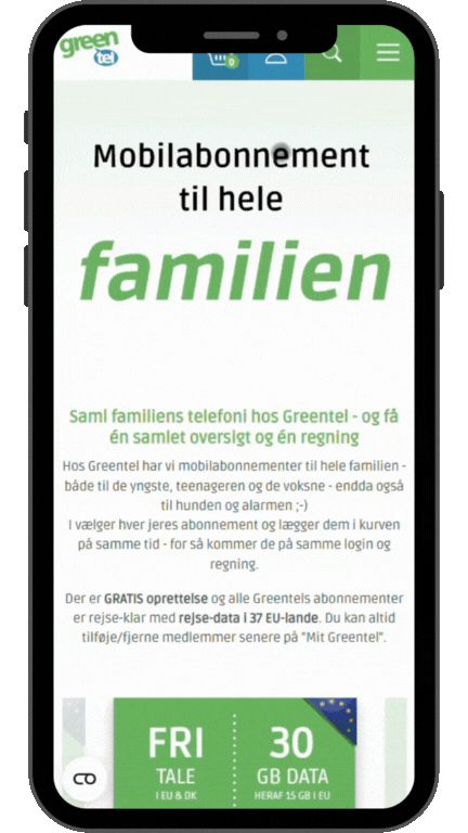 Hos Greentel har vi mobilabonnementer til hele familien - både til de yngste, teenageren og de voksne - endda også til hunden og alarmen ;-)