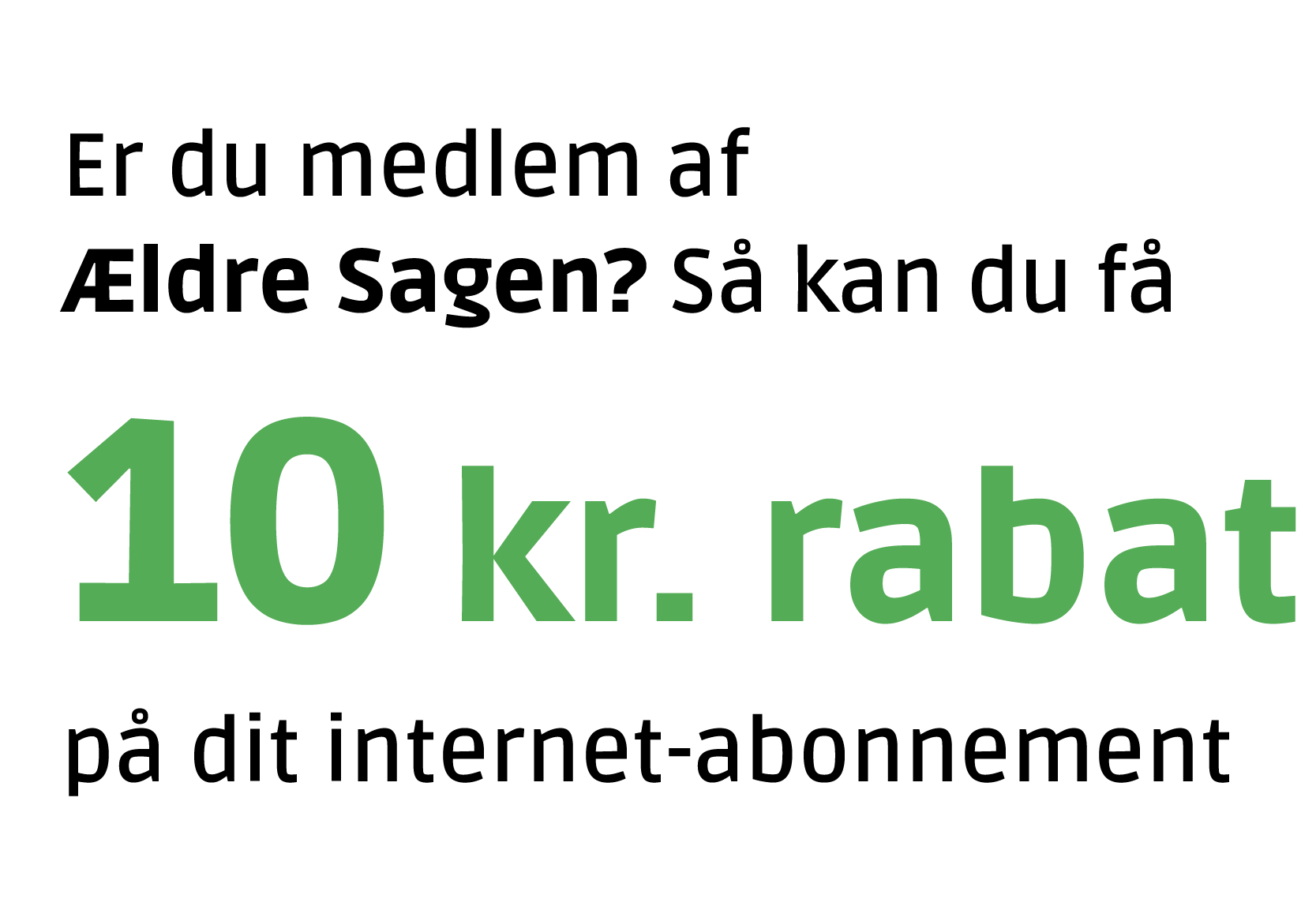 Indtast dit Ældre Sagen medlemsnummer under oprettelsen, så får du 10 kr. i rabat hver måned på abonnementet og en gratis låne-router.